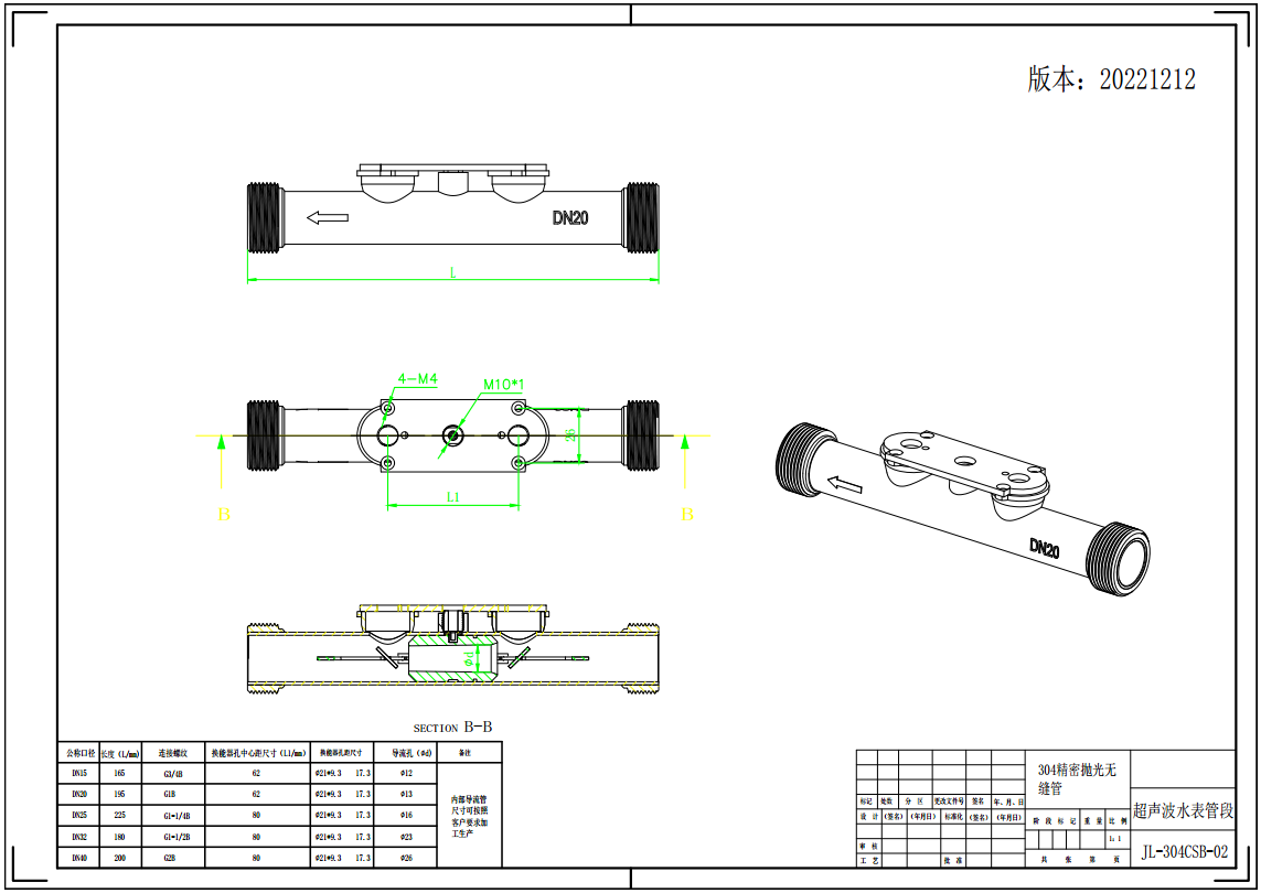 304超声波管段无阀 DN15-DN32 插片+导流管结构